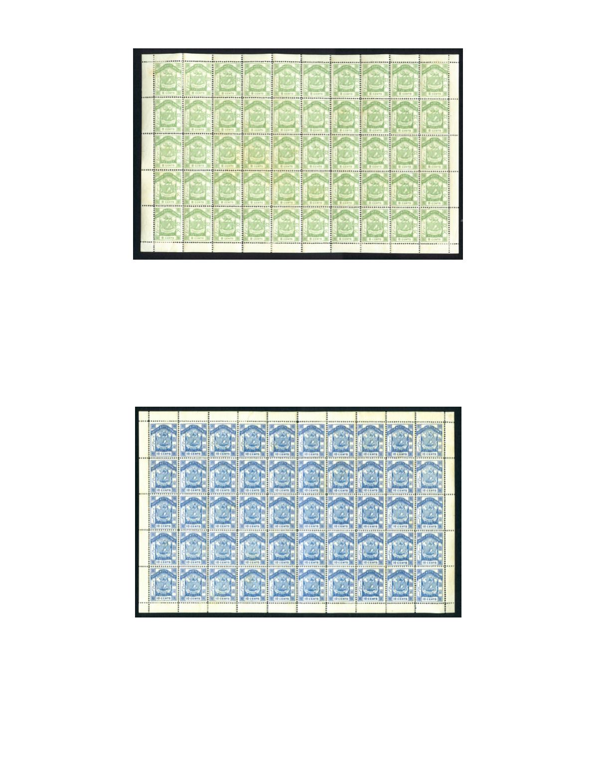 1886-87 issue 10 cents blue complete sheet of 50 from Transfer A, mint full original gum, very fine and rare.