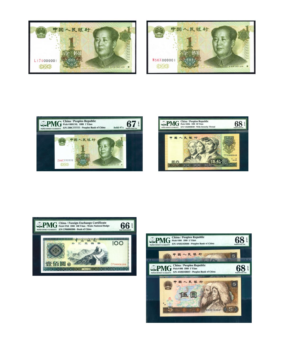 Certificate. 100 Yuan No. CP06906206. PMG 66 EPQ. Photo
