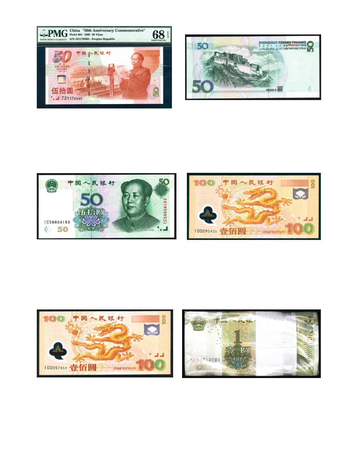 People Bank of China 1999. 50 Yuan. "50th Anniversary Commemorative" No. J21176465. EPQ68. Photo