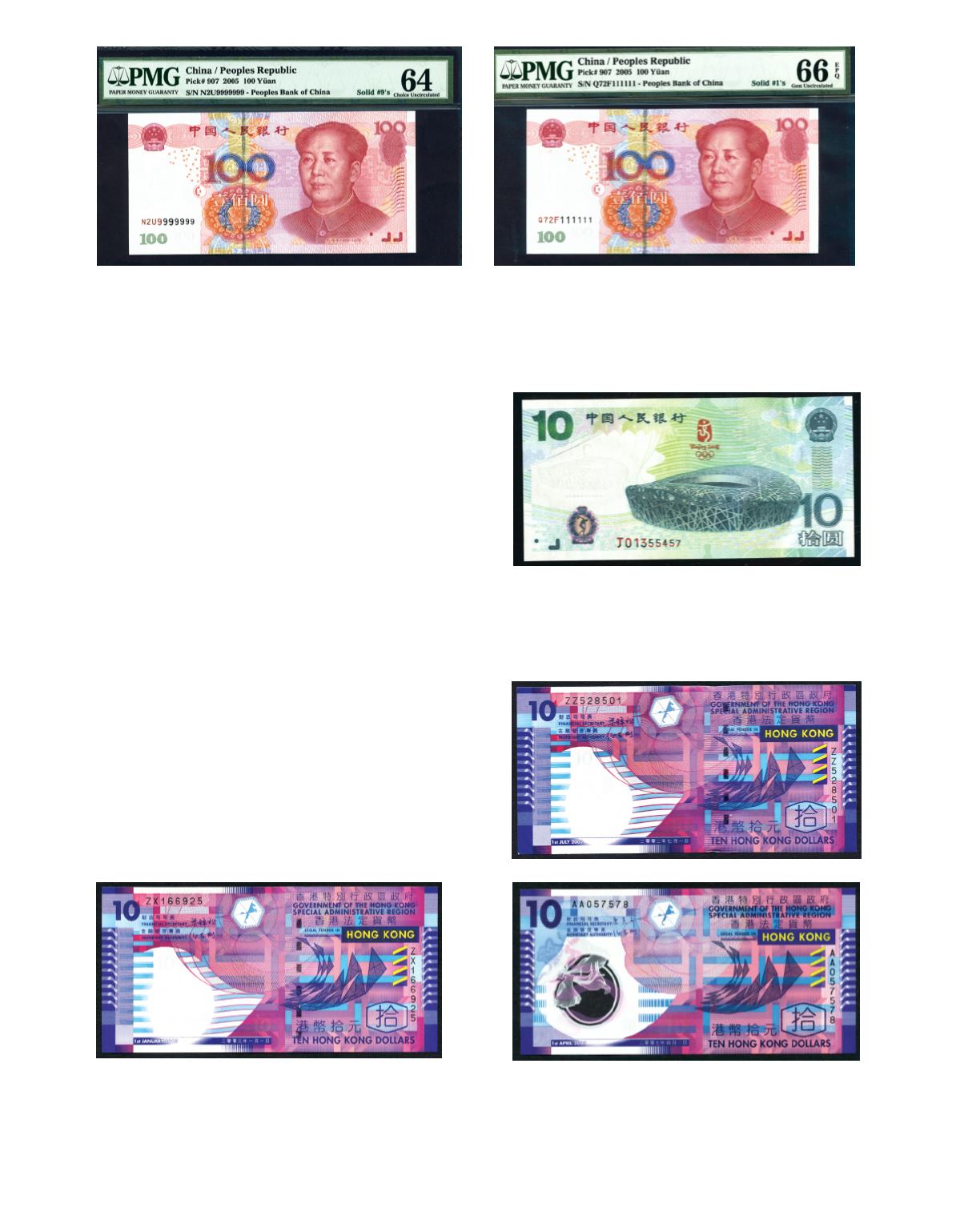 The People Bank of China 2005. 100 Yuan. No. N2U9999999. PMG 64. Photo