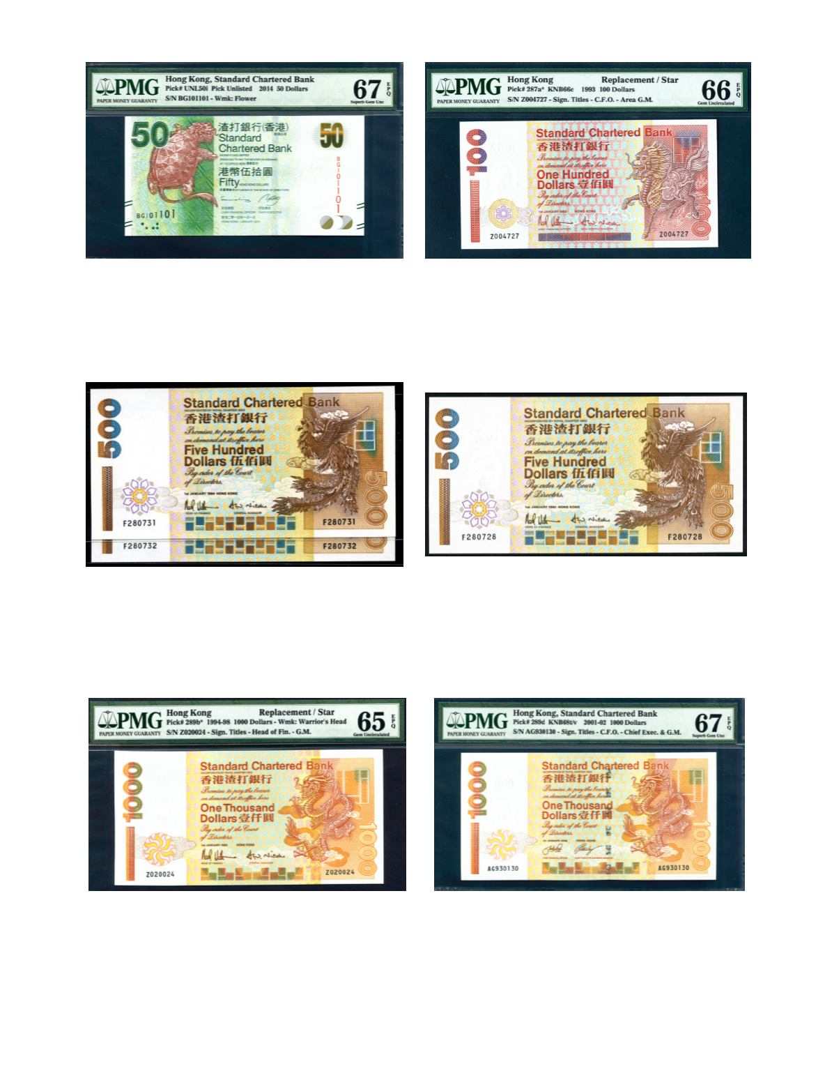 The Standard Chartered Bank of Hong Kong. 1994. $500 No. F280731 and F280732. Total 2 pcs. Both UNC. Photo