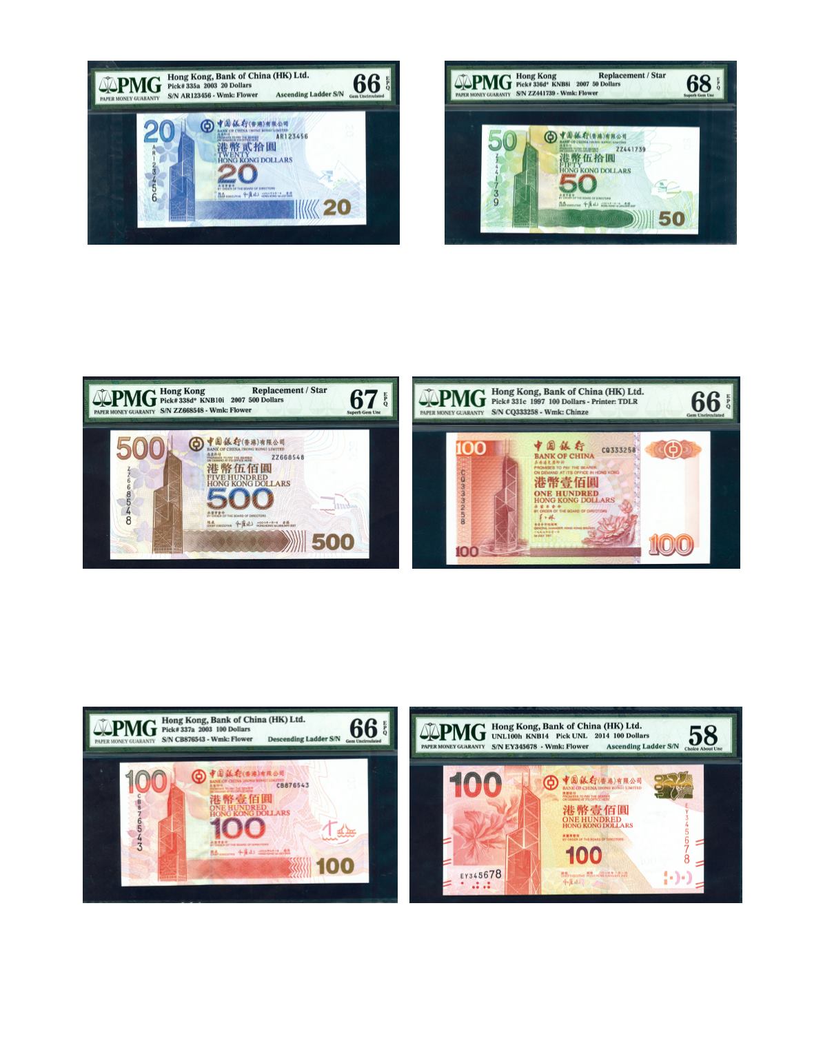 The Bank of China (Hong Kong) 2007. $50. No. ZZ668548. PMG 67 EPQ. Photo