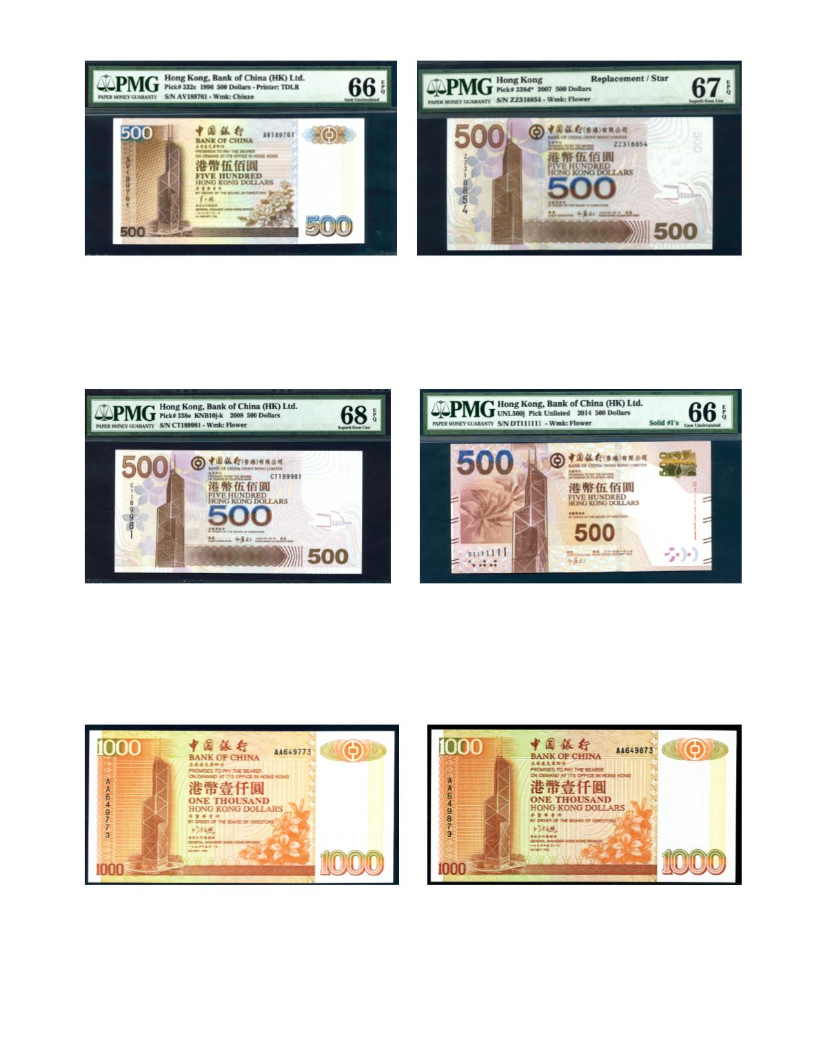 The Bank of China (Hong Kong) 2008. $500. No. CT189981. One of the key value note of $500. PMG 68 EPQ. Photo