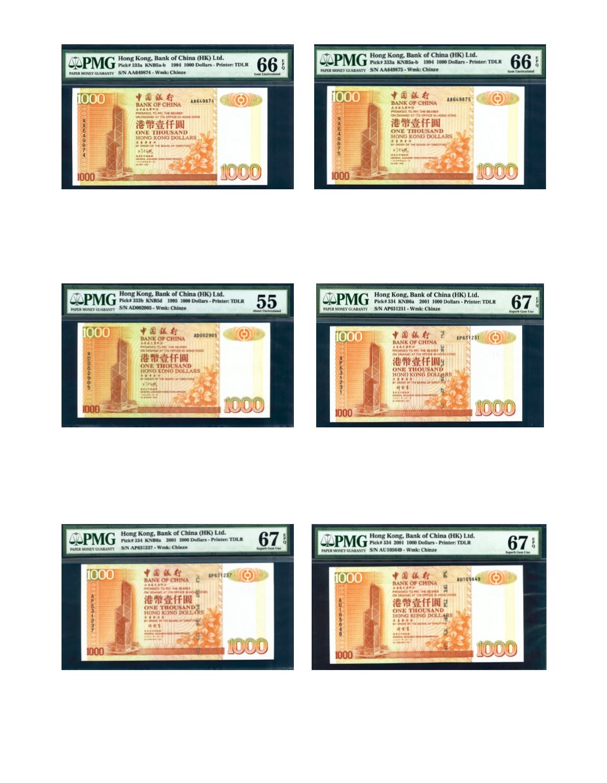 The Bank of China (Hong Kong) 2001. $1000 No. AU105649. PMG 67 EPQ. Photo