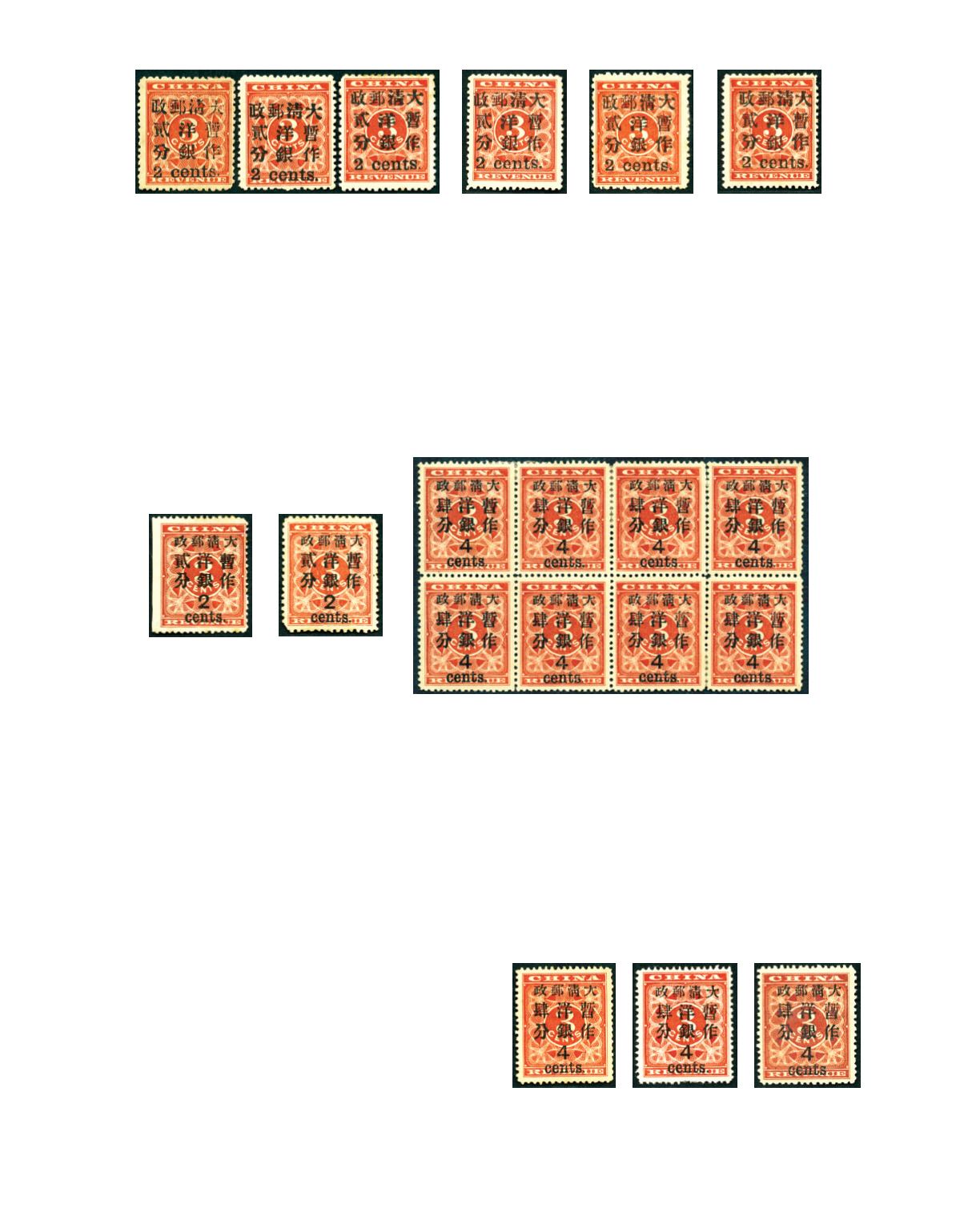 1897 Small figures surcharged 2c on 3c x 3, all mint, one stamp regummed, one stamp no gum. Chan 84. Photo