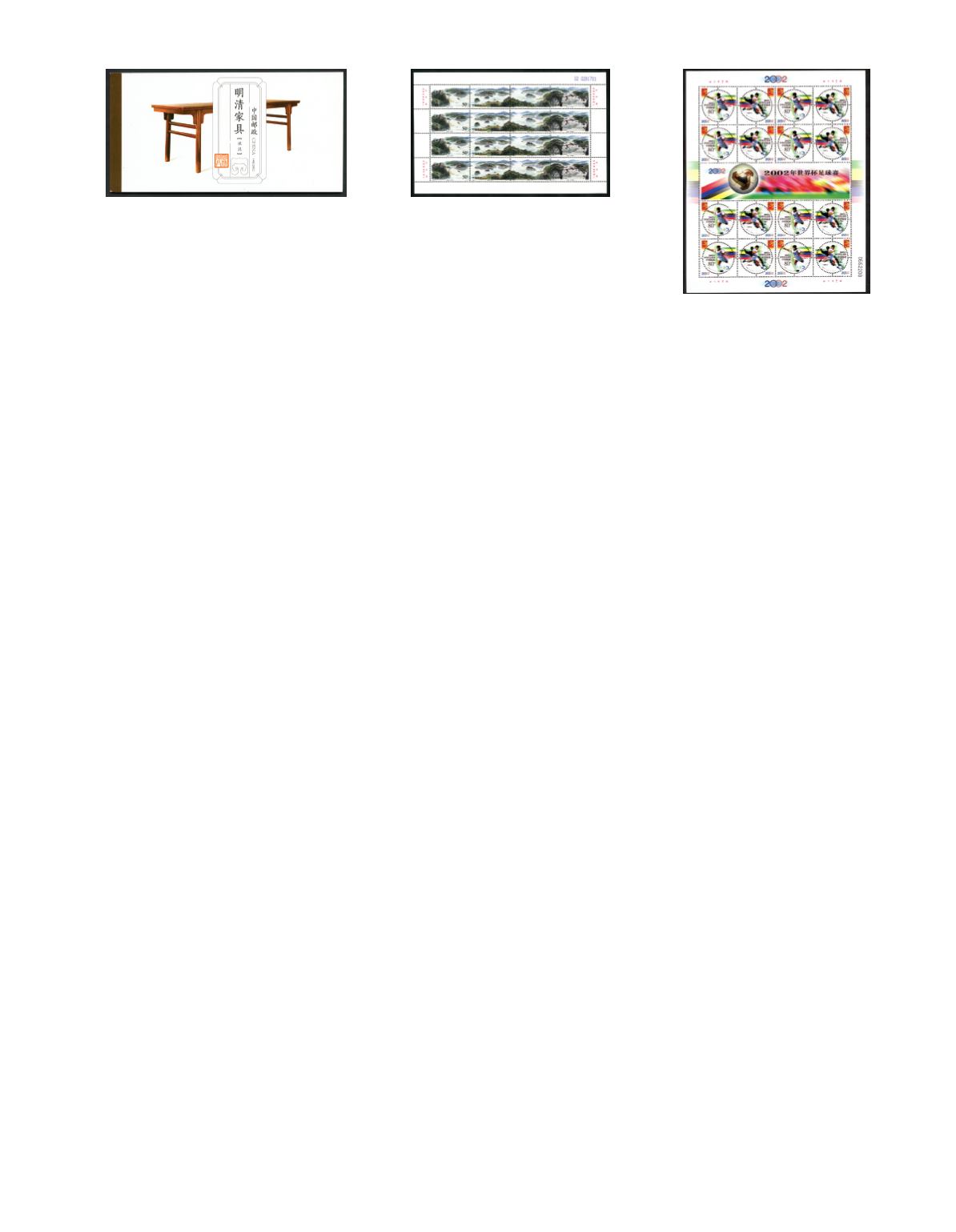 A group of yearly stamp sheets including (2000-22) x 1, (00-17) x 1, (01-22) x 6, (02-11) x 2, (06-3) x 5, (06-6) x 6, (07-30) x 10,