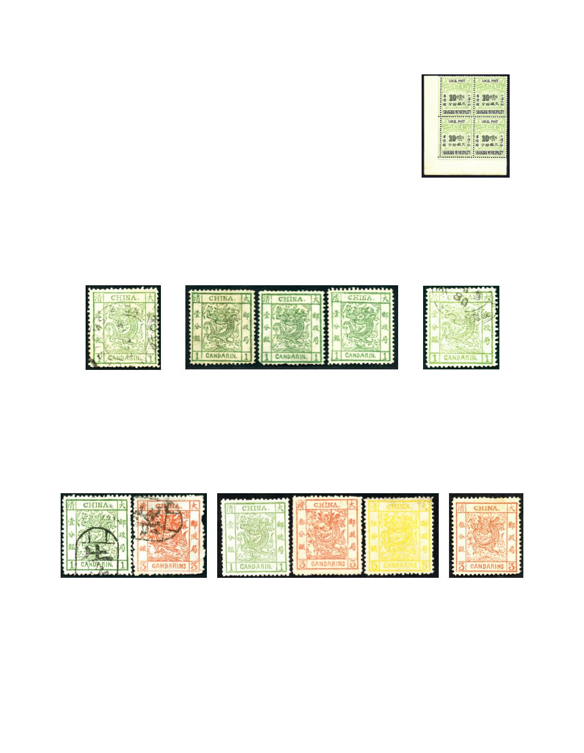 1878 Large Dragon Thin paper 1 cand green, mint and no gum, and 1883 Thick paper 3 cands and 5 cands, 3 cands and 5 cands