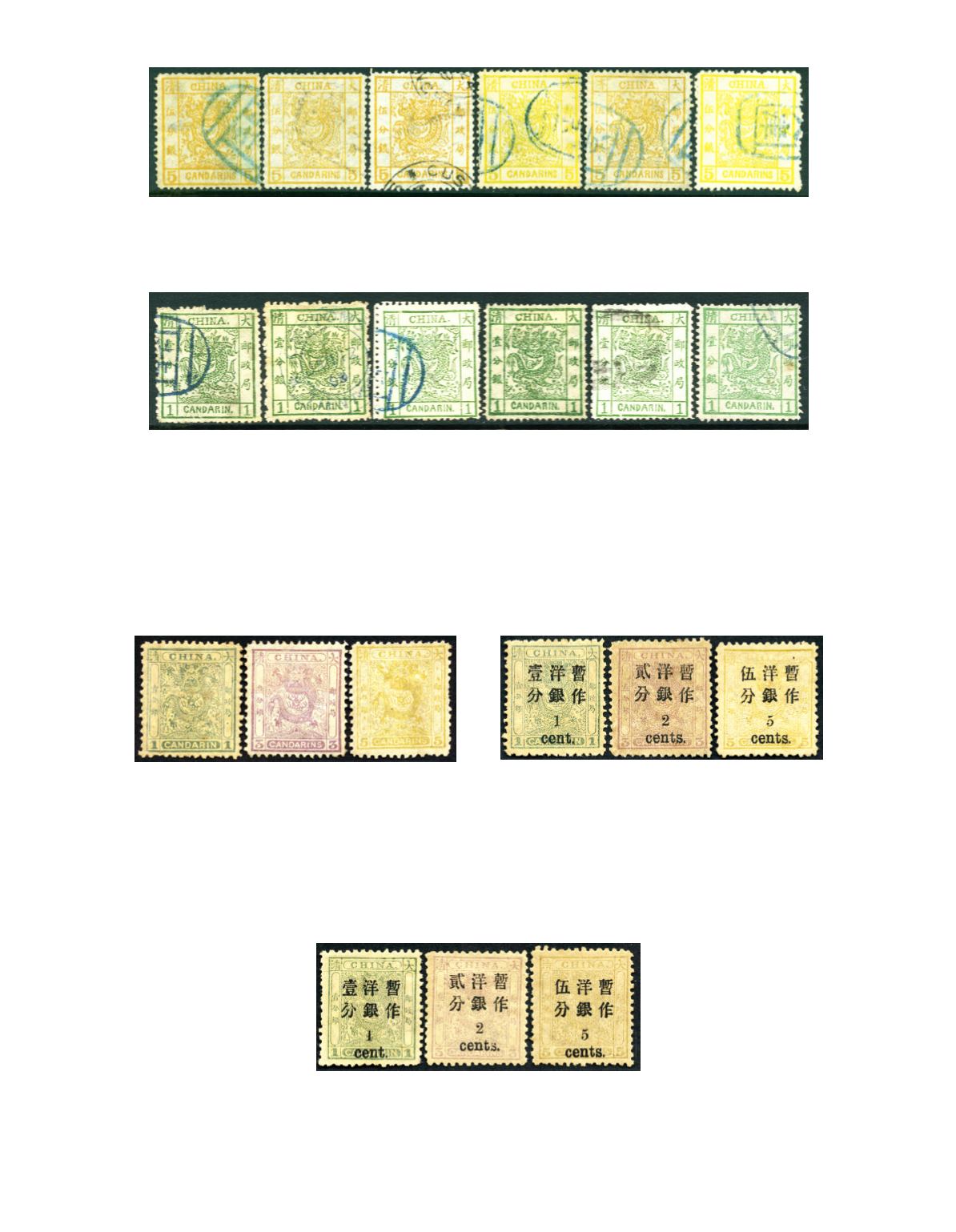 A small selection of Large Dragon different printings, 1 cands green, with minor varieties, used. Photo
