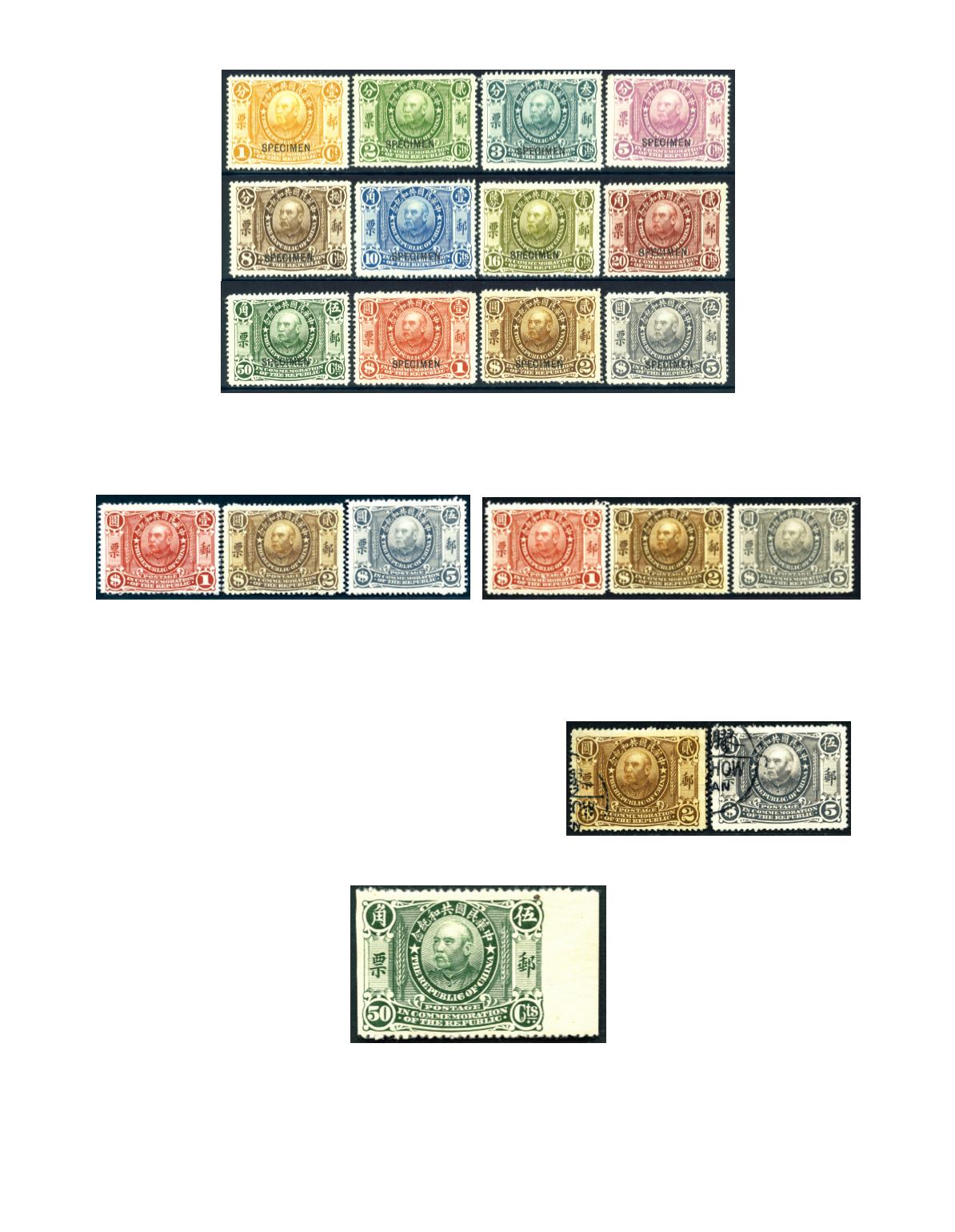 1912 Republic 1c to $5 complete set of 12, all tied by partial bilingual