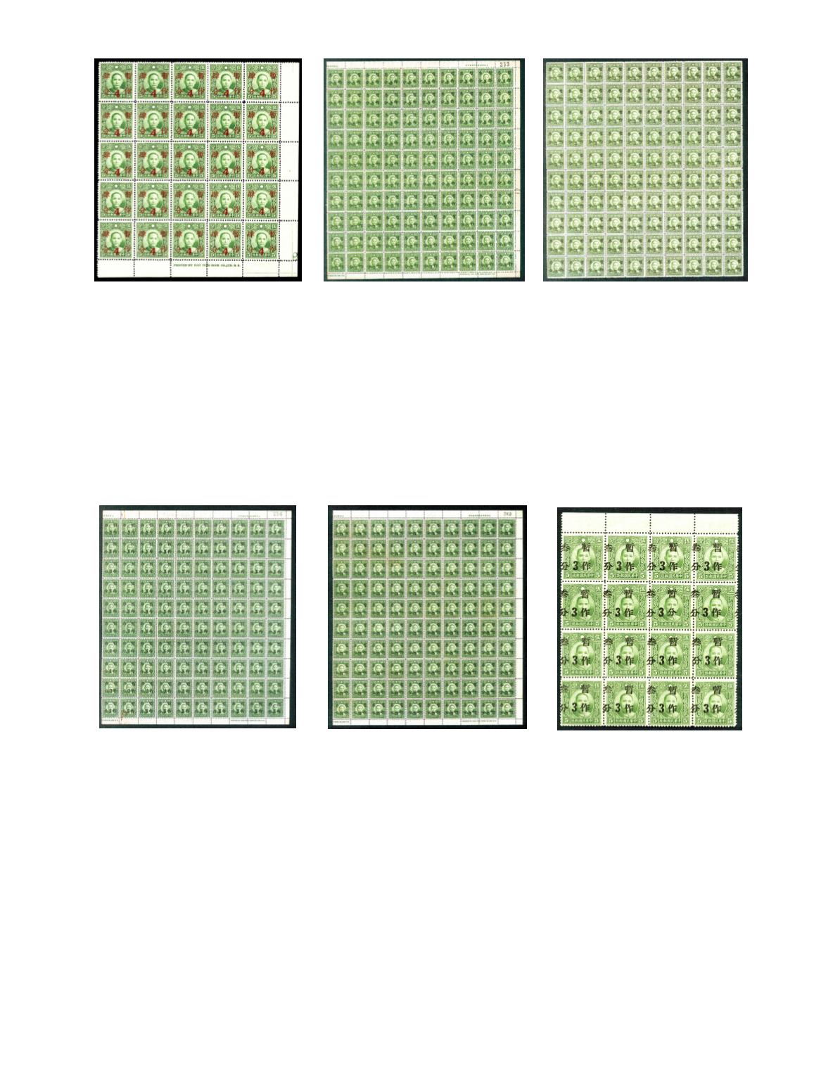 variety, and surcharge of 4 cents block of 12, with center char. 'Fun' instead of 'Tso' variety . Chan 480, 480a. 491, 491h. Photo