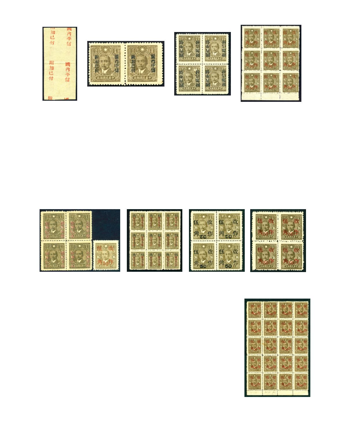 total 11 difference provinces, plus Surcharged for Domestic Postage Paid, Kansu surcharged