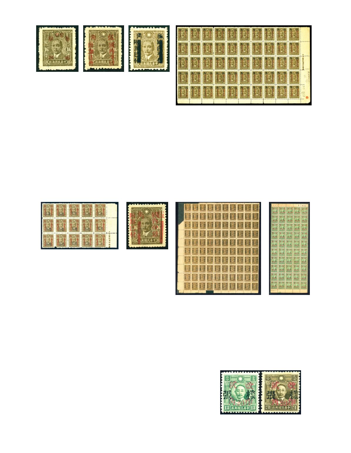 1943 East Szechwan 50 cents surcharge with 2 vertical bars on SYS 16c Central Trust print, block of 50, perf. 11 and thin '16' at