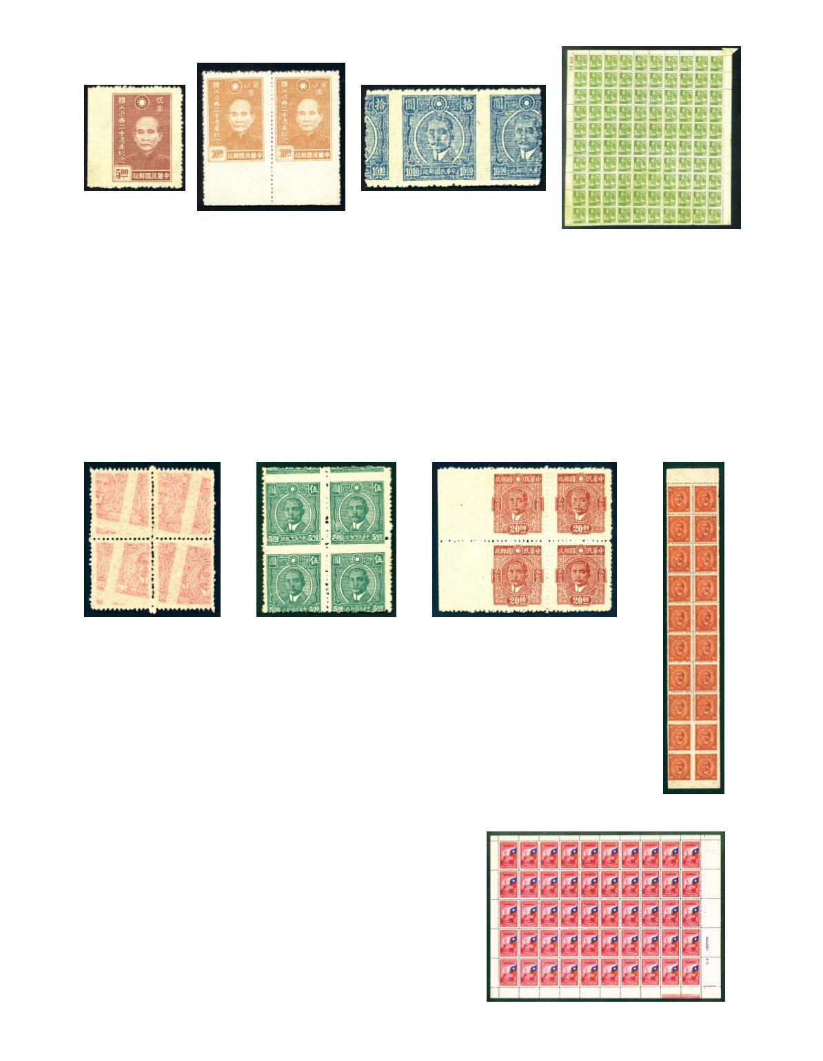 1945 SYS Chungking Dah Tung print, $20 red vertical block of 20, with lower block of 4 completely imperforate,