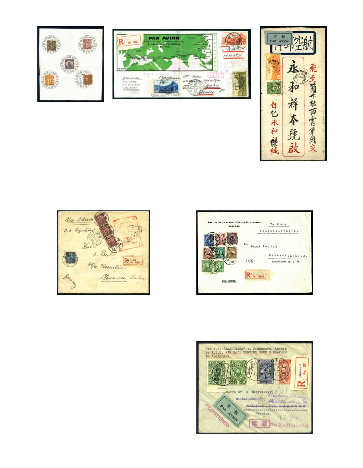 1936 (13 Aug.) A large cover from Peiping reg. to Hannover. Germany, via Siberia, bearing 2nd Peking print Reaper 15c and 30c