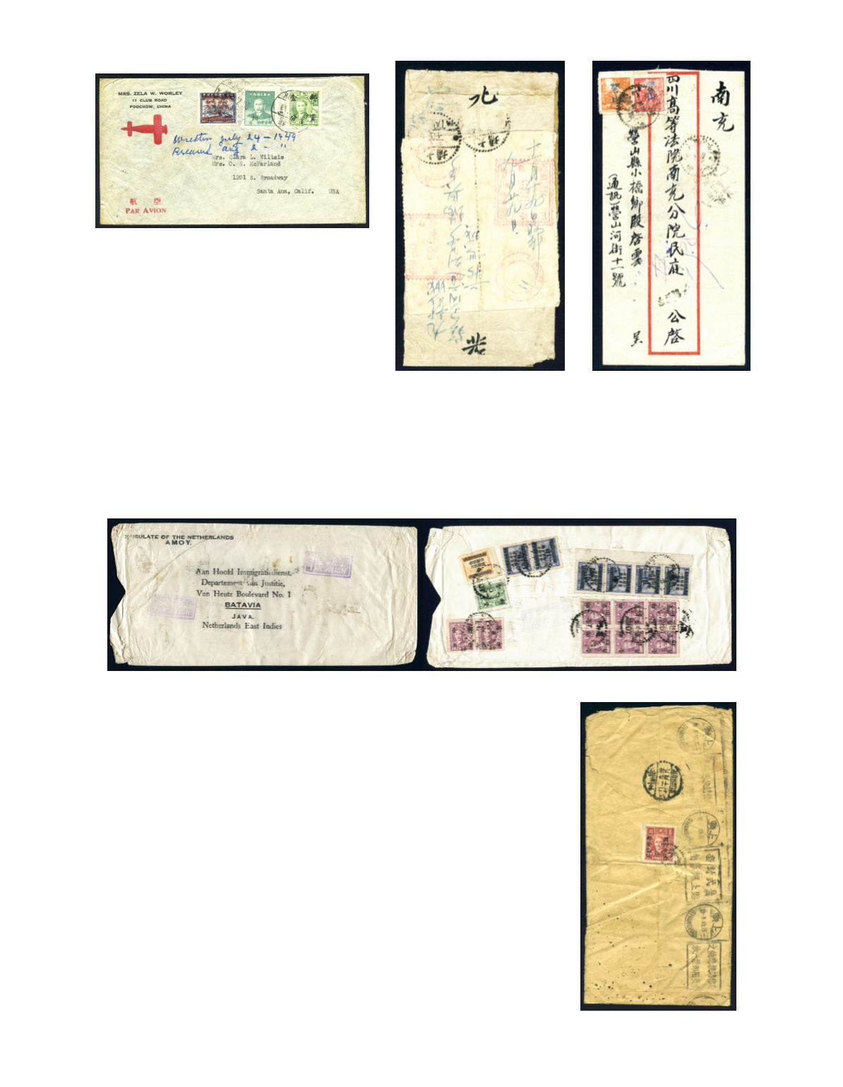 and bilingual 'SUCHOW/20.9.49' arrival cds, center folded and torn at back side, but not