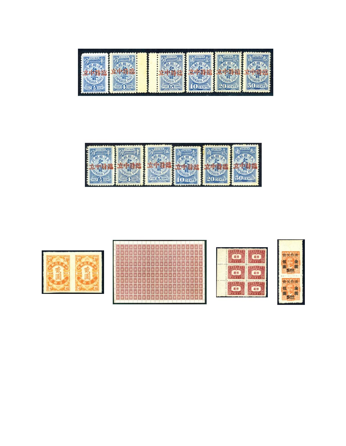 1948 CNC for use as Gold Yuan postage due, $5 on $40 vertical pair with imperf. top margin, unused and no gum as issued. Chan
