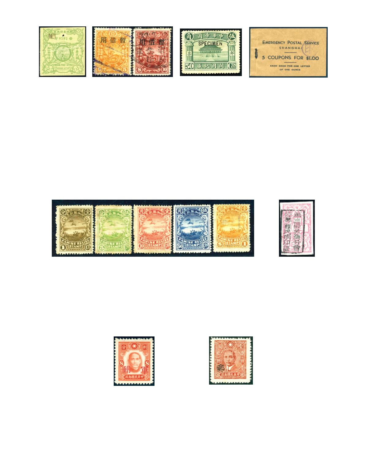 1932 Emergency Postal Service, Shanghai, 5 coupons for $1, containing 4 coupons inside and 1 coupons mounted on page. Photo
