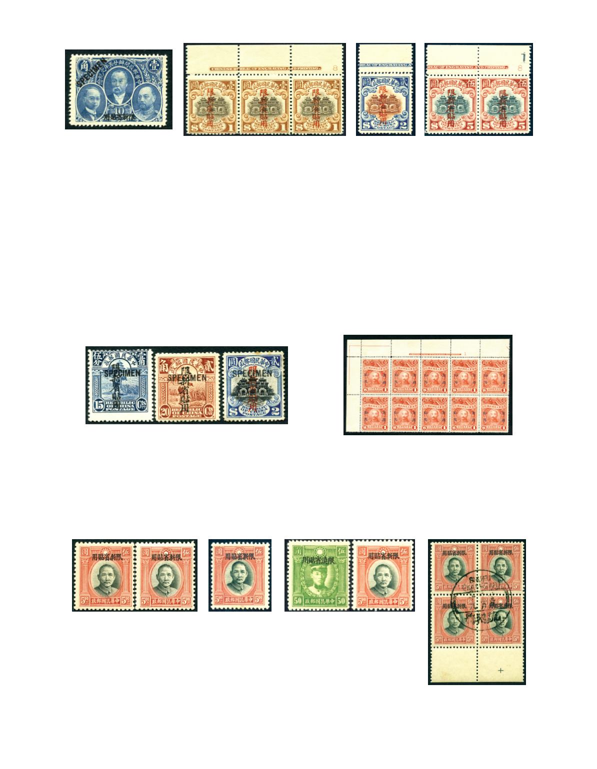 1924 Overprinted 'Limited for use in Sinkiang' on 2nd print Junk 15c, 20c and $2, each with opt. 'SPECIMEN', very fine. Photo