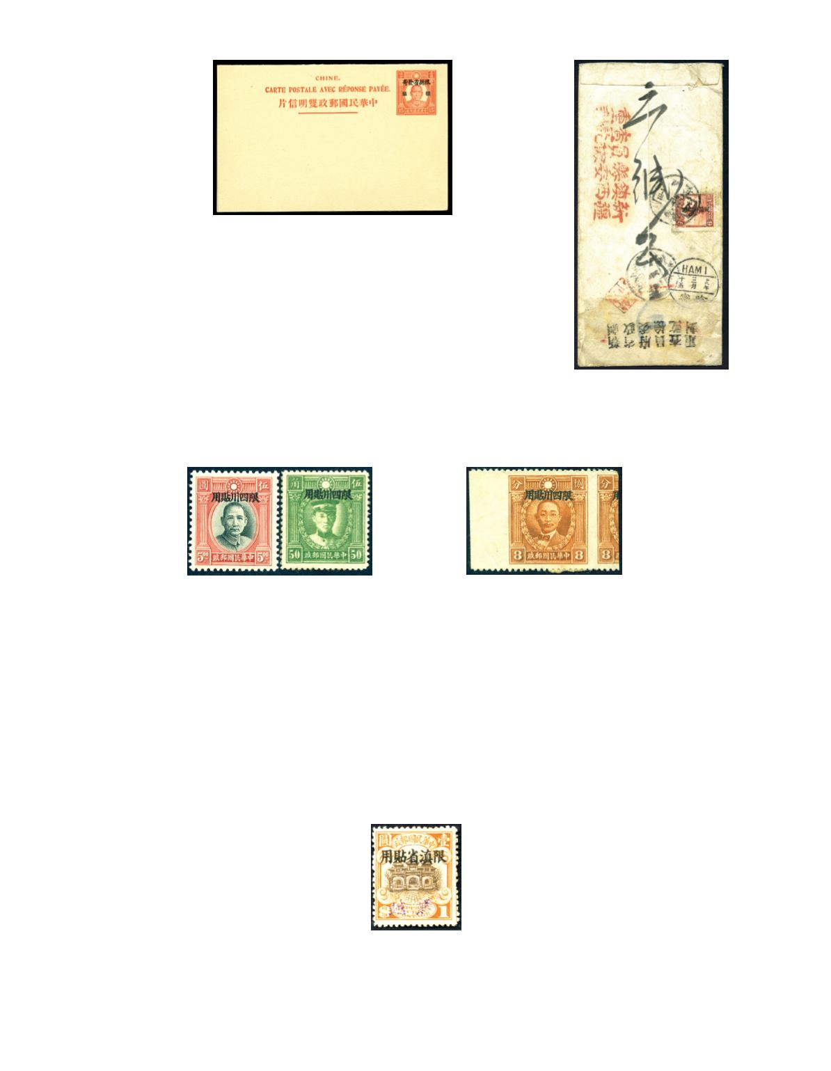 Overprinted 'For use in Sinkiang' on SYS pre-stamp stationery cards, 2 1/2c green and 15c