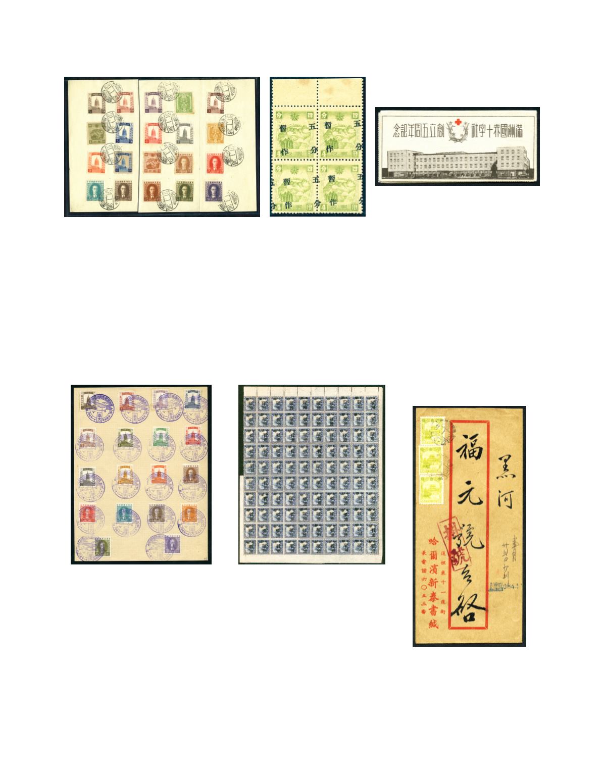 A small selection of Manchukuo sets on paper, tied by commemorative cancel, including 1st