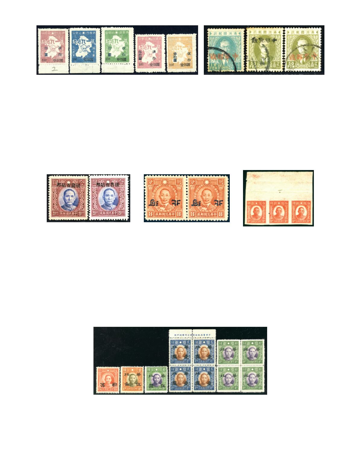 Martyrs issues, plus overprint inverted variety, very strong North China and Mengkiang areas, with high values and blocks, imitation