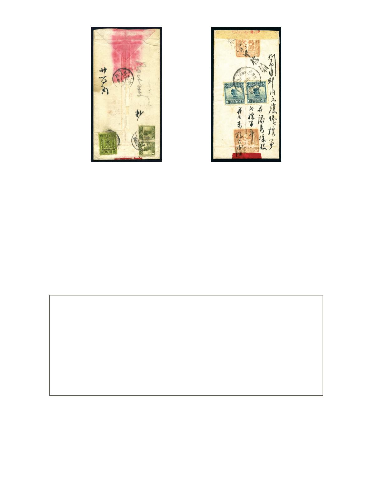 Mongolia 25mg green, tied by the same cds, and 2nd print Junk 4c in pair, tied by bilingual 'HARBIN' cds. Photo