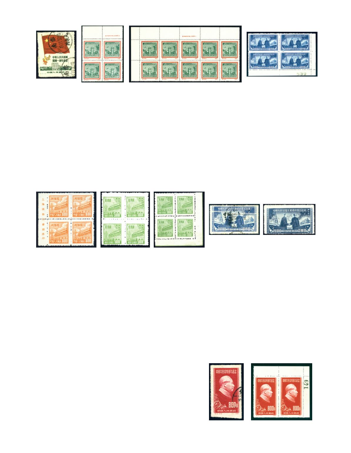 1950 Tien An Men (Used in North East) 2nd print plus unissued $50,000. Complete set of 13 in block of 4, unused, no gum as