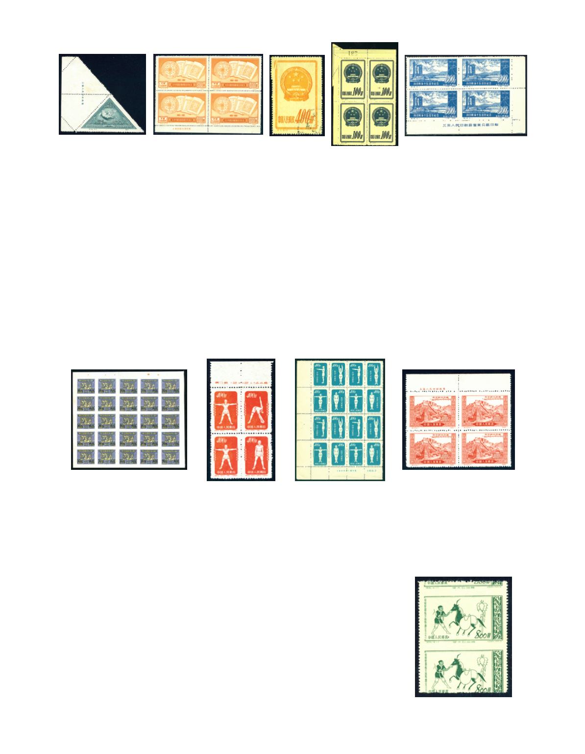 1952 An PRC Dove and Globe revenue, $5,000 yellow and blue with 50 cents surcharge , large block of 25, mint and fine. Photo