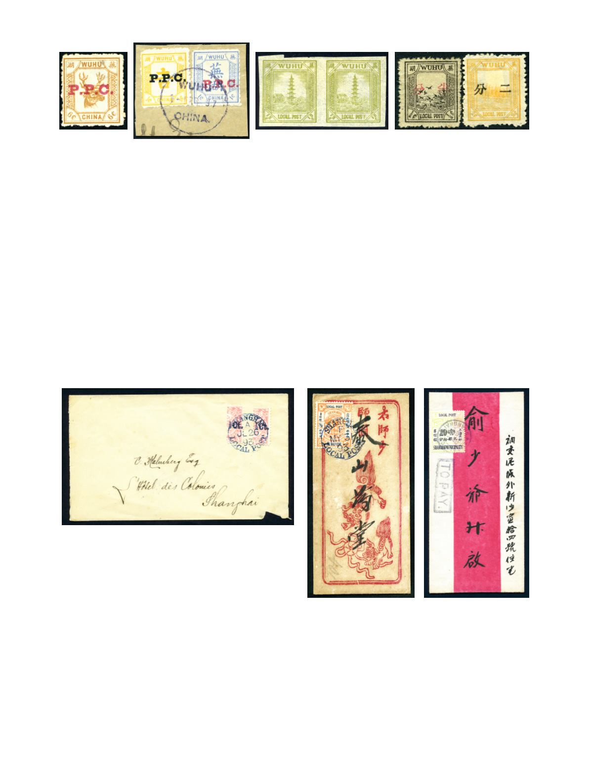 A small selection of the Wuhu Local Post 1st issue, imperf. values, from 1/2c to 15c, 15c is in pair, plus a few 2nd issue single