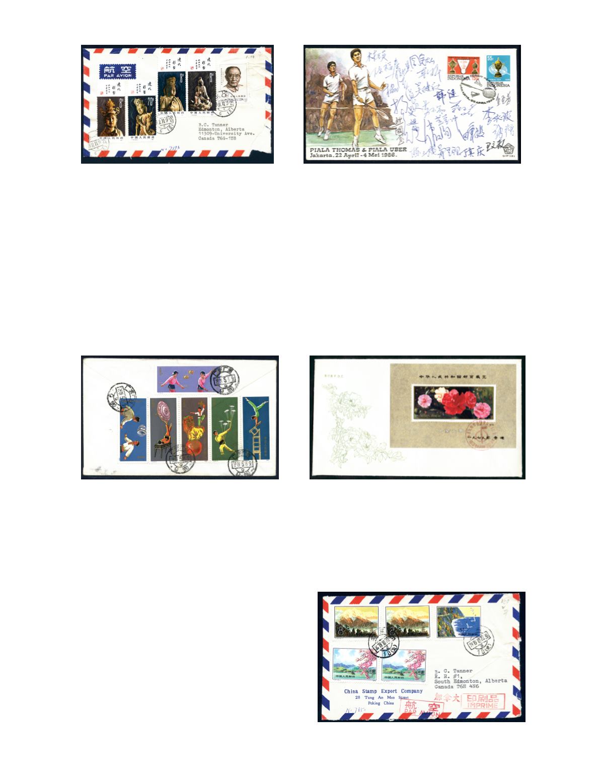 first day cancel. Plus 2 covers with T54 Lotus set of 3, and S57 50f, both sent to Canada. Photo