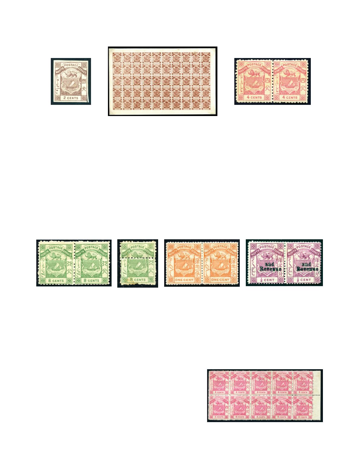1886 perf 14 issue, 4 cents pink block of ten with sheet margin at