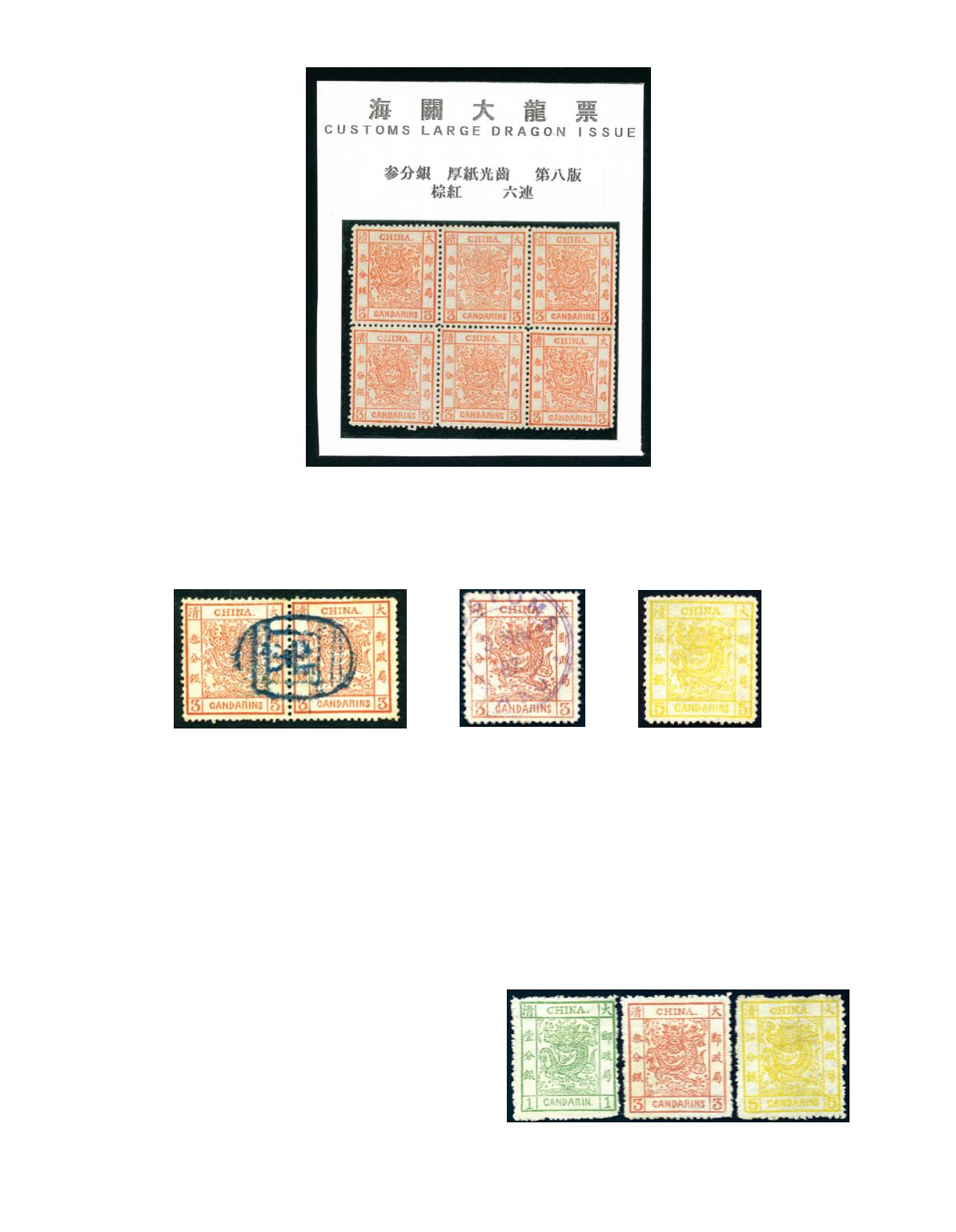 1883 Large Dragon thick paper, 3 cands brown red, tied by double ring 'CUSTOMS/TAKU/3.11.87' cds, very fine and rare. Chan