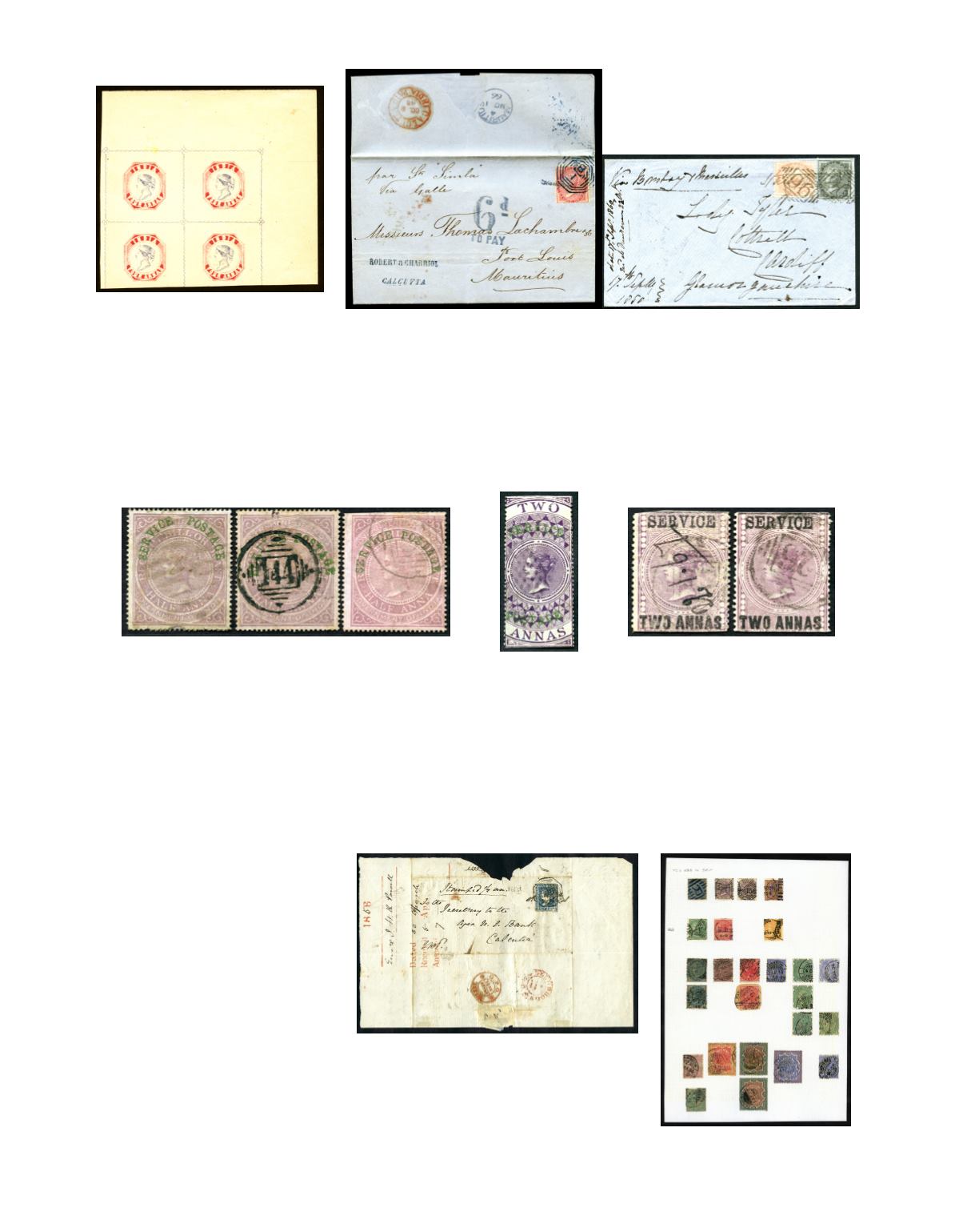 numerals '96' cancellation, and also 1866 entire letter from Calcutta to Mauritius, par Str Simla, via Galle, bearing 1856 QV 8a