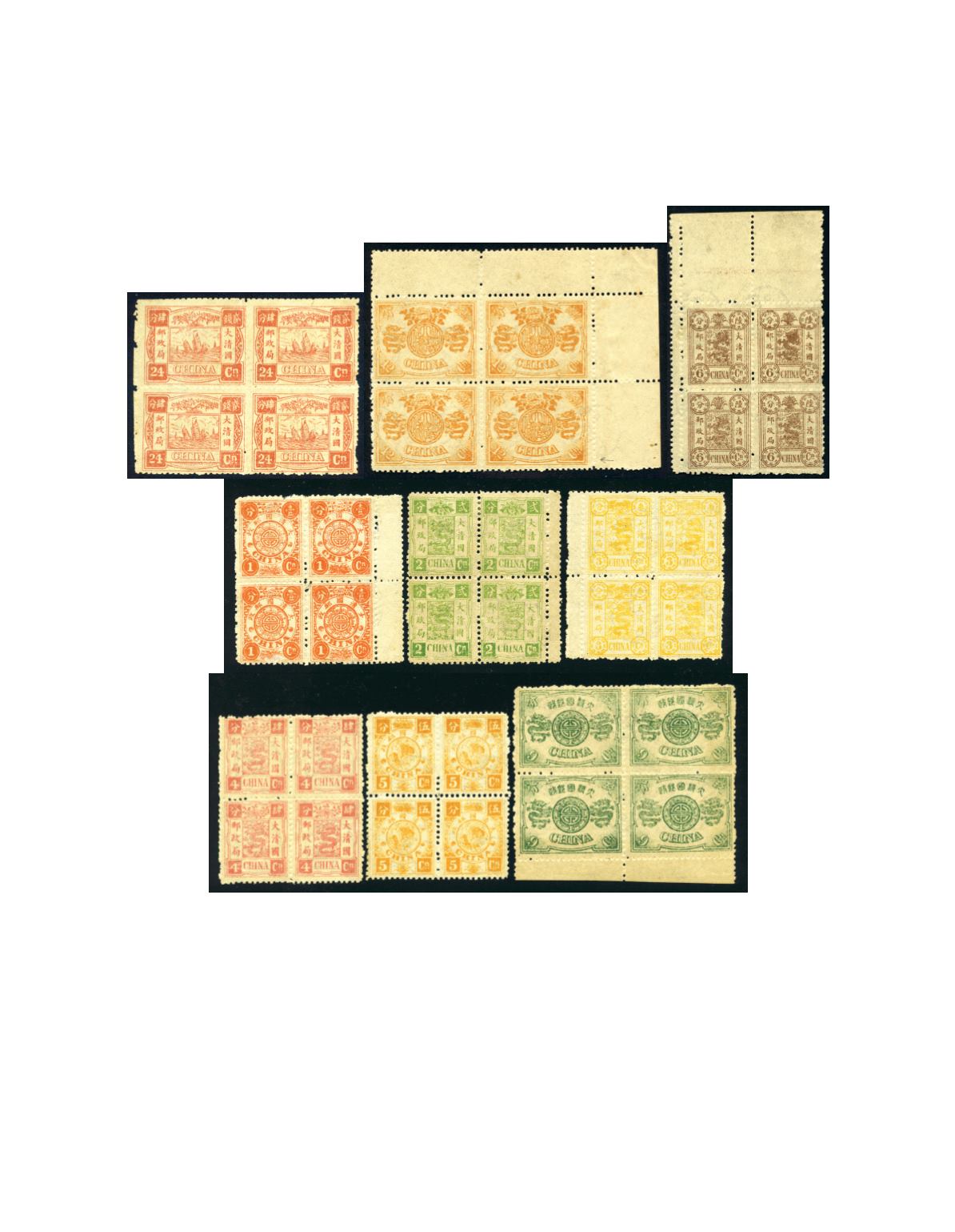 1894 Dowager first printing 1 cand to 24 cands complete set of 9 in blocks of 4, 1 cand with hinge remnant, 24 cands horizontal