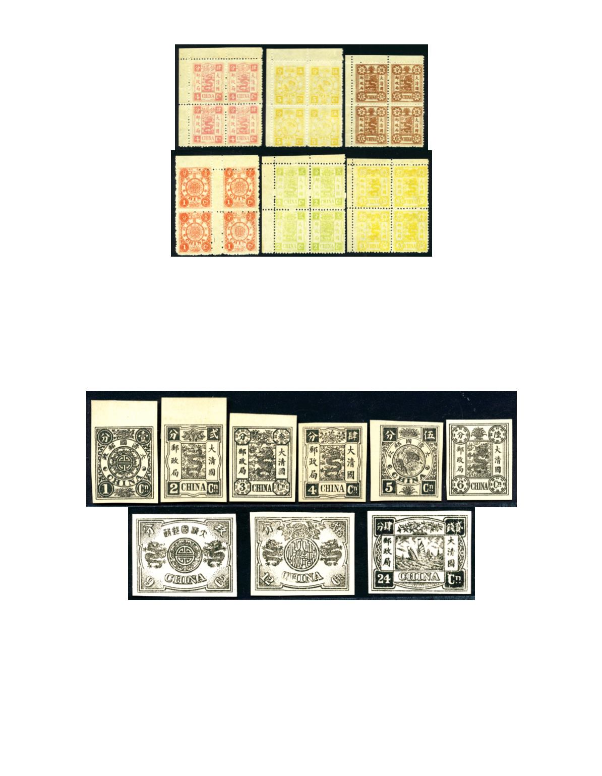 1897 Dowager re-engraved plate proofs printed in black on thick paper, 1 ca. to 24 ca., extremely fine and very rare. Chan Proof 7.