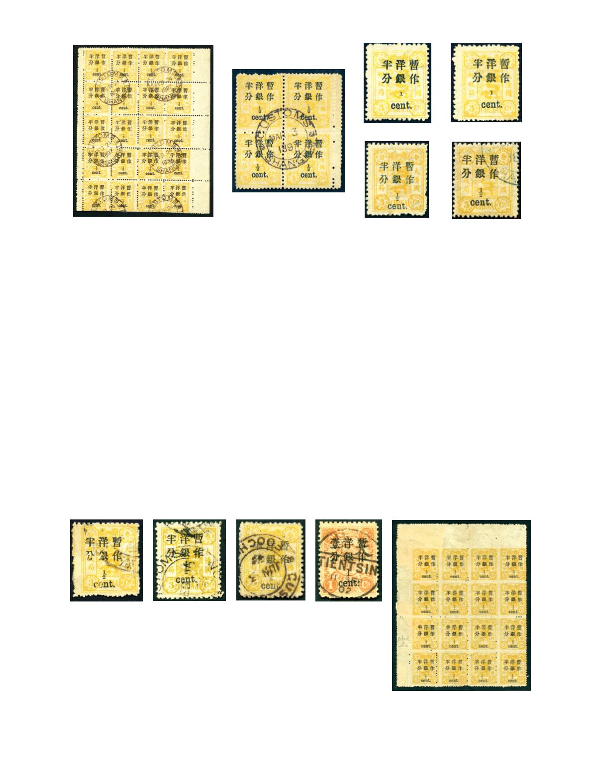 and top right stamp showing surcharged figures 1/2 over 'n' of 'cent' variety, tied by full strike 'CUSTOMS/SHANGHAI/3.3.97'