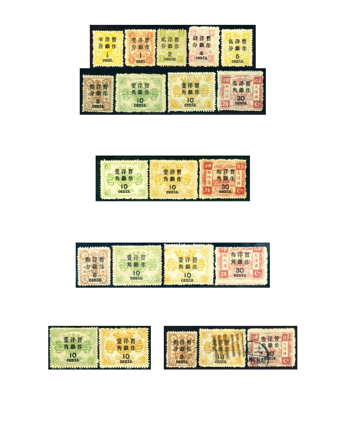 1897 Dowager large figures surcharged 2.50mm on 2nd printing, 1c on 1 cand to 30c and 24 cands, mint, 5c on 5 cands and 10c