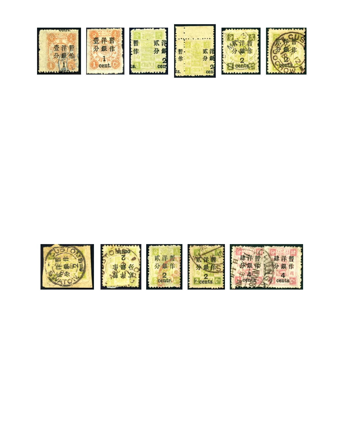 1897 Dowager large figures surcharged 2.50mm on 2nd print, 2c on 2 cand yellow green tied by partial 'SHASI' Dollar chop, very