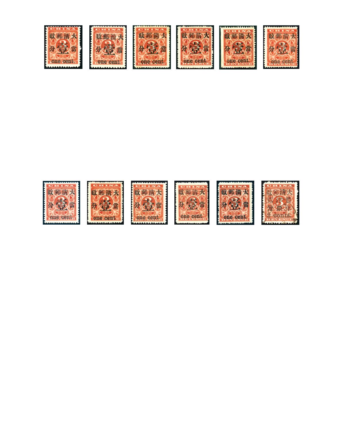 1897 Large figures surcharged 1c on 3c vertical pair tied by red brown Pakua cancellation, fine. Chan 87. Photo