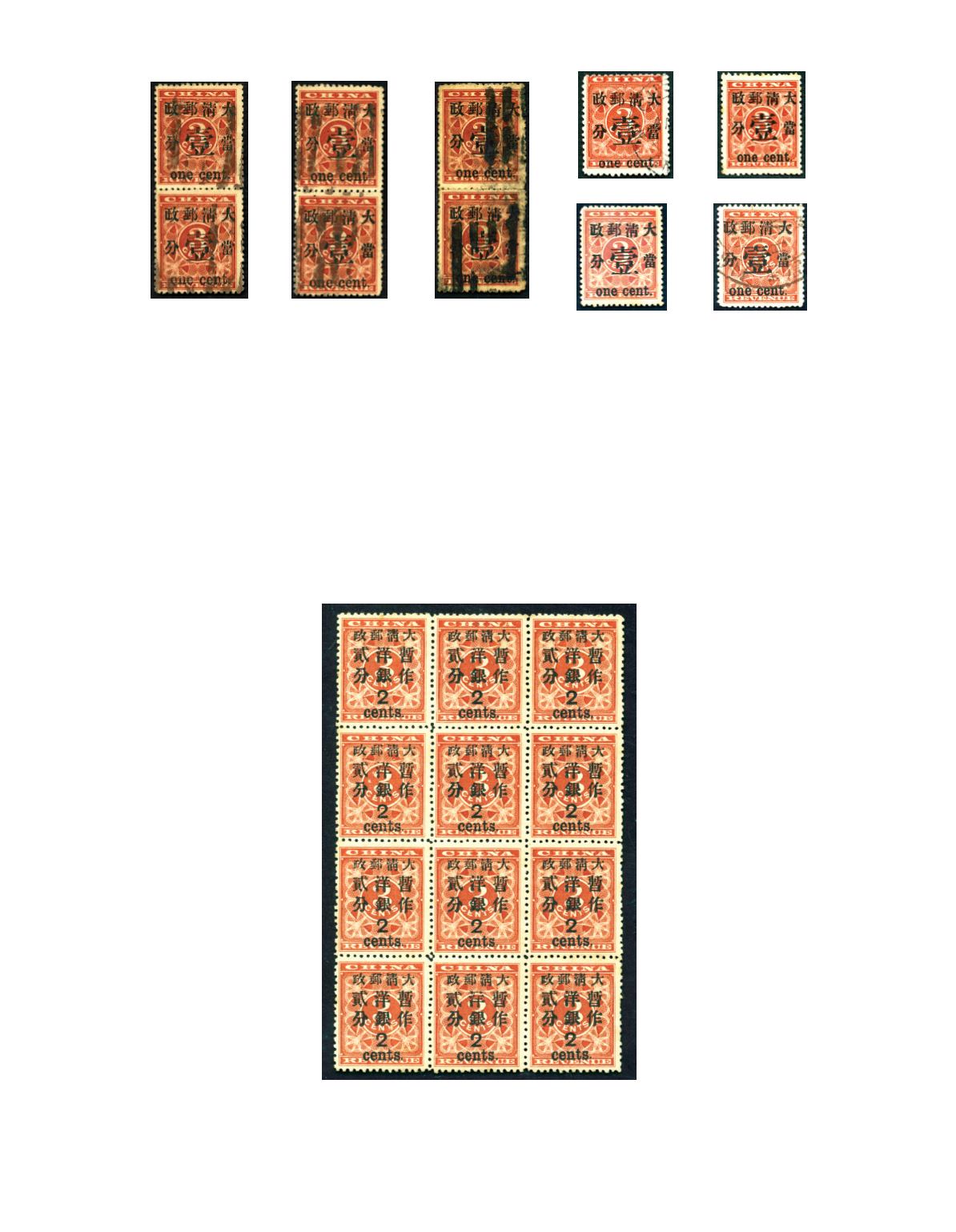 1897 Large figures surcharged 2c on 3c block of 12, mint full original gum with some toning, rare multiple. Chan 88. Photo