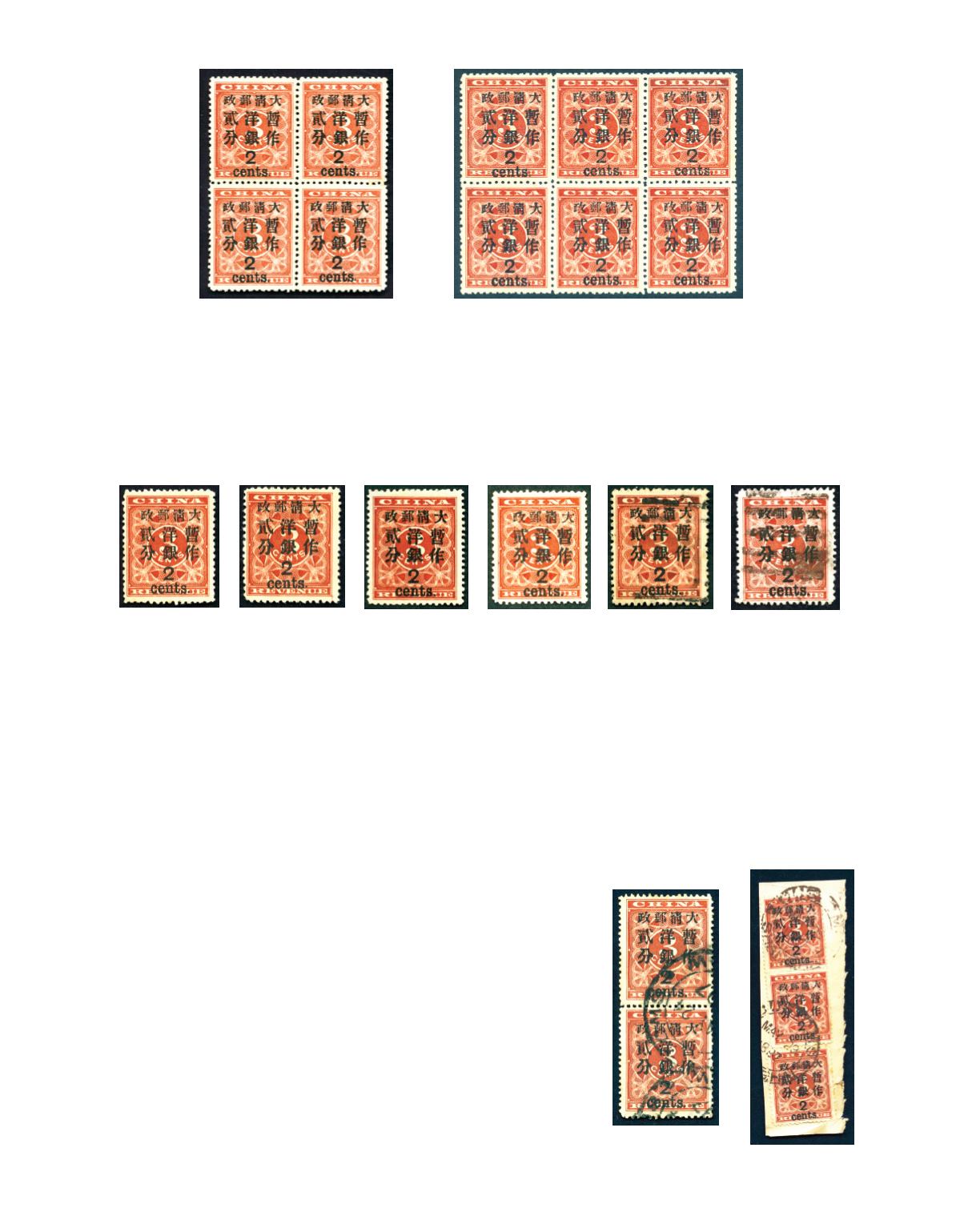 1897 Large figures surcharged 2c on 3c block of 4, with position no. 100, unused and no gum. Very rare. Chan 88. Photo