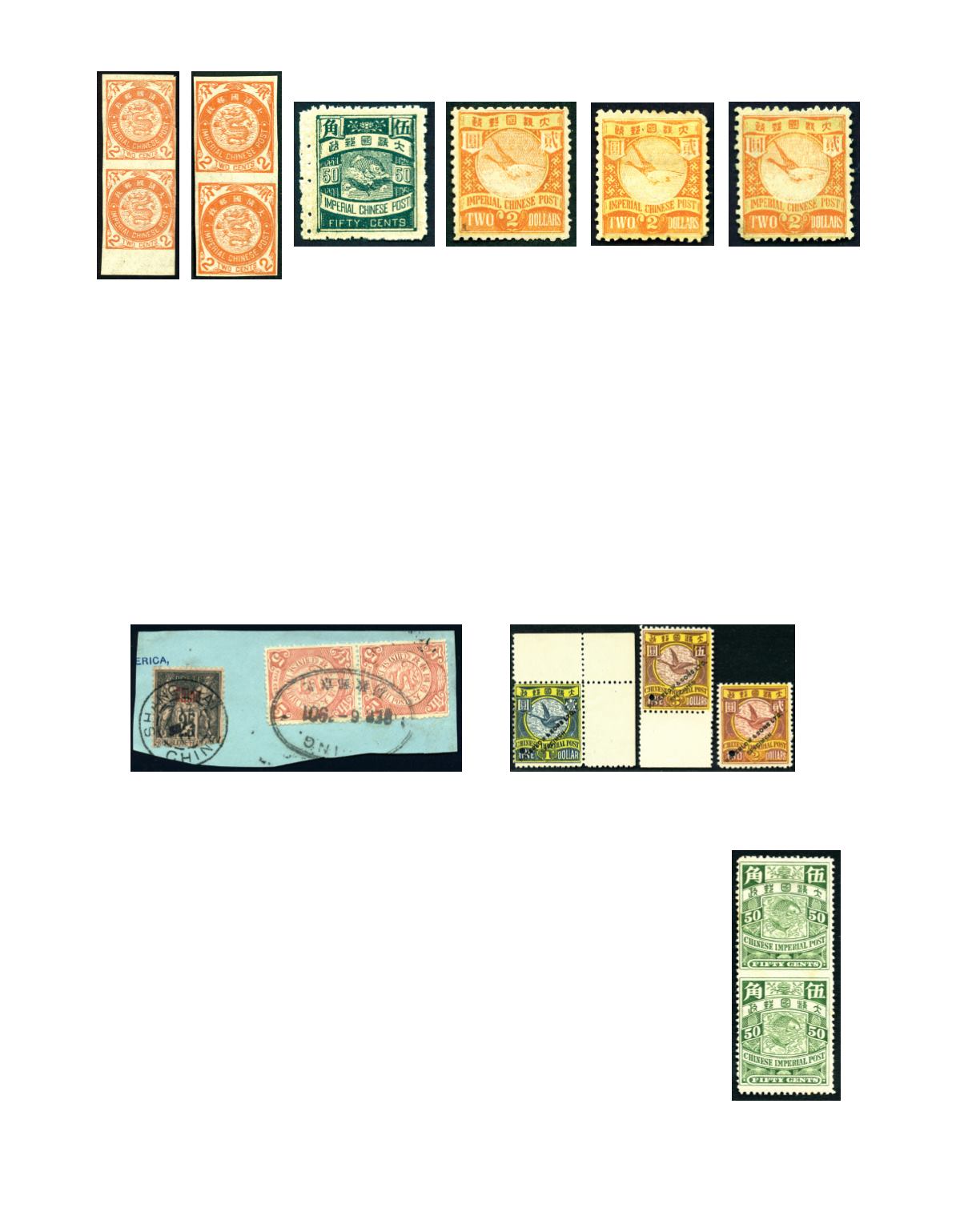 1897 ICP typo Coiling Dragon, Flying Geese $2 orange and yellow, mint and no gum. Chan 102. Photo
