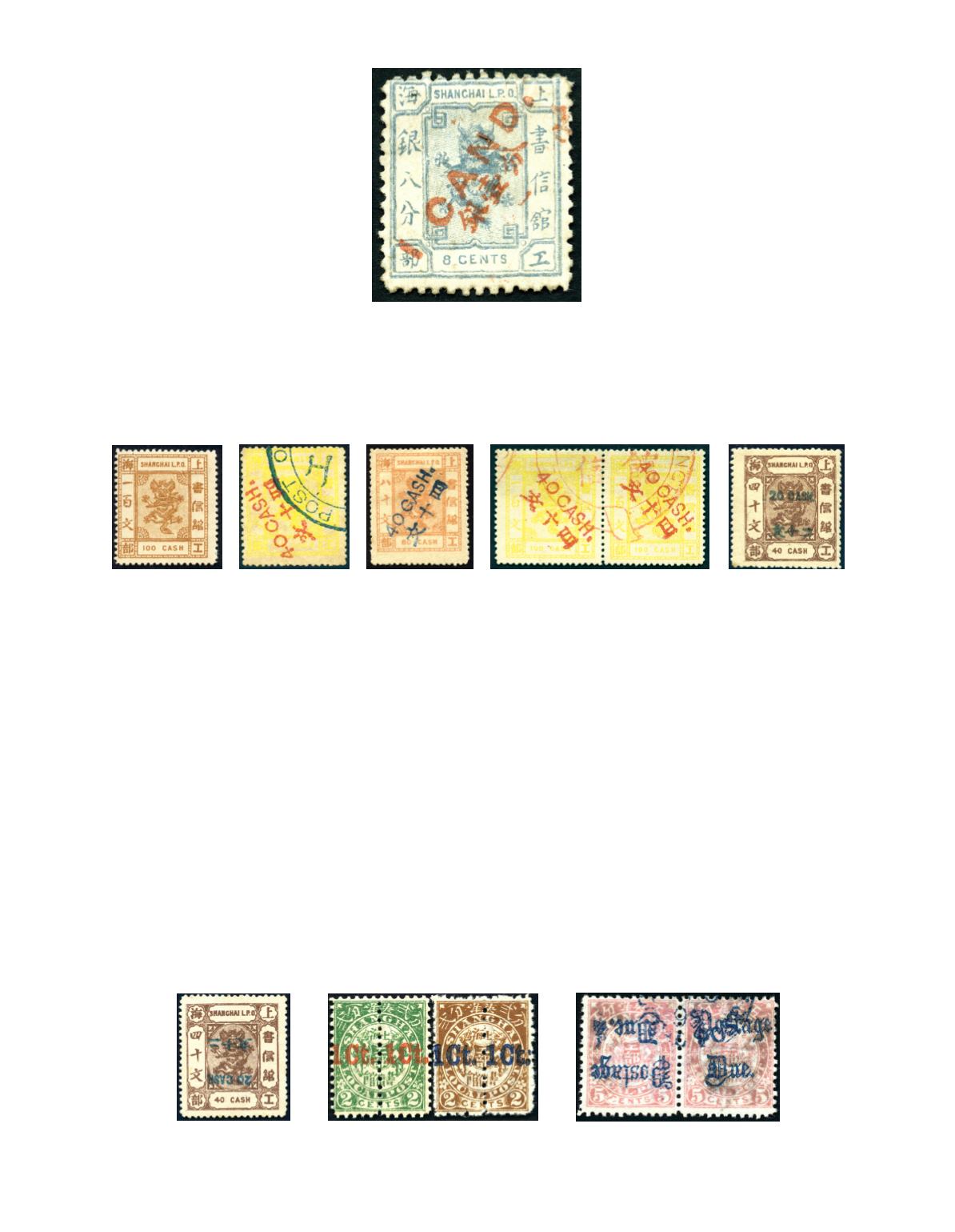 1888 Shanghai Local Post 5th surcharged on Small Dragons complete set of 4, with extra shades 20 cash on 40 cash and 80 cash on
