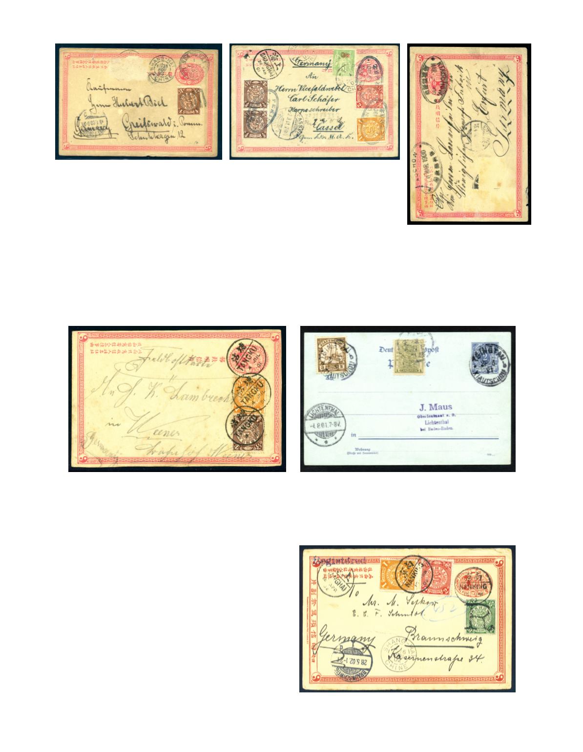 and 1901 (July) a pc to Austria, bearing Coiling Dragon 4c chestnut, tied by bilingual 'CHEFOO' cds and mixed with overprinted
