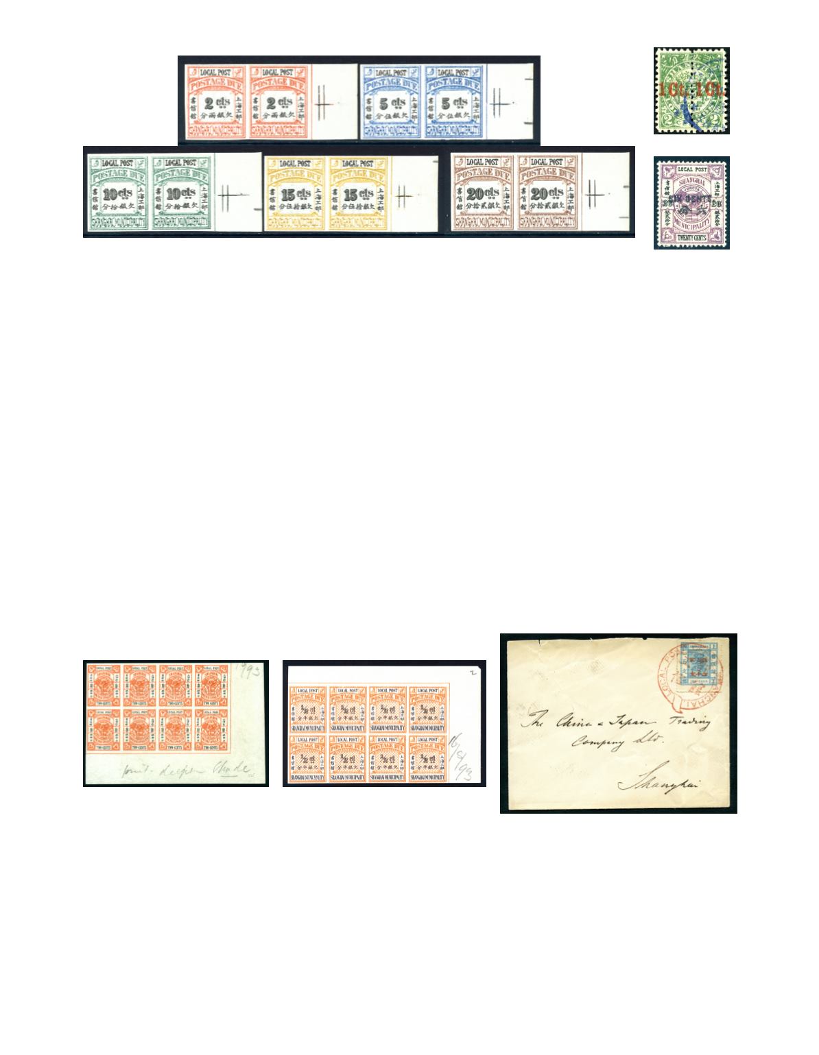 A small selection of the Shanghai Local Post Cost of Arms mint set, surcharged short set of 2 mint, Jubilee mint set, block of 4,