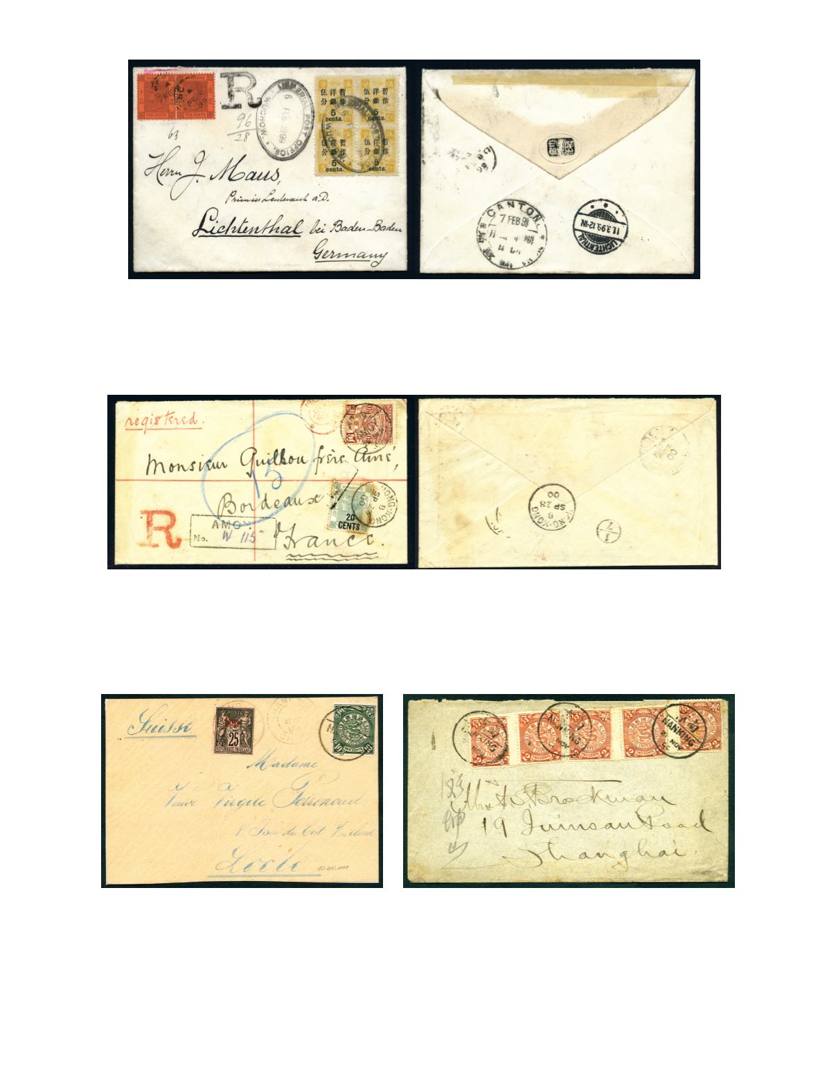 1900 (20 Nov.) A cover from Nanking to Shanghai, bearing Coiling Dragon 2c red x 5, tied by bilingual 'NANKING' cds, on reverse