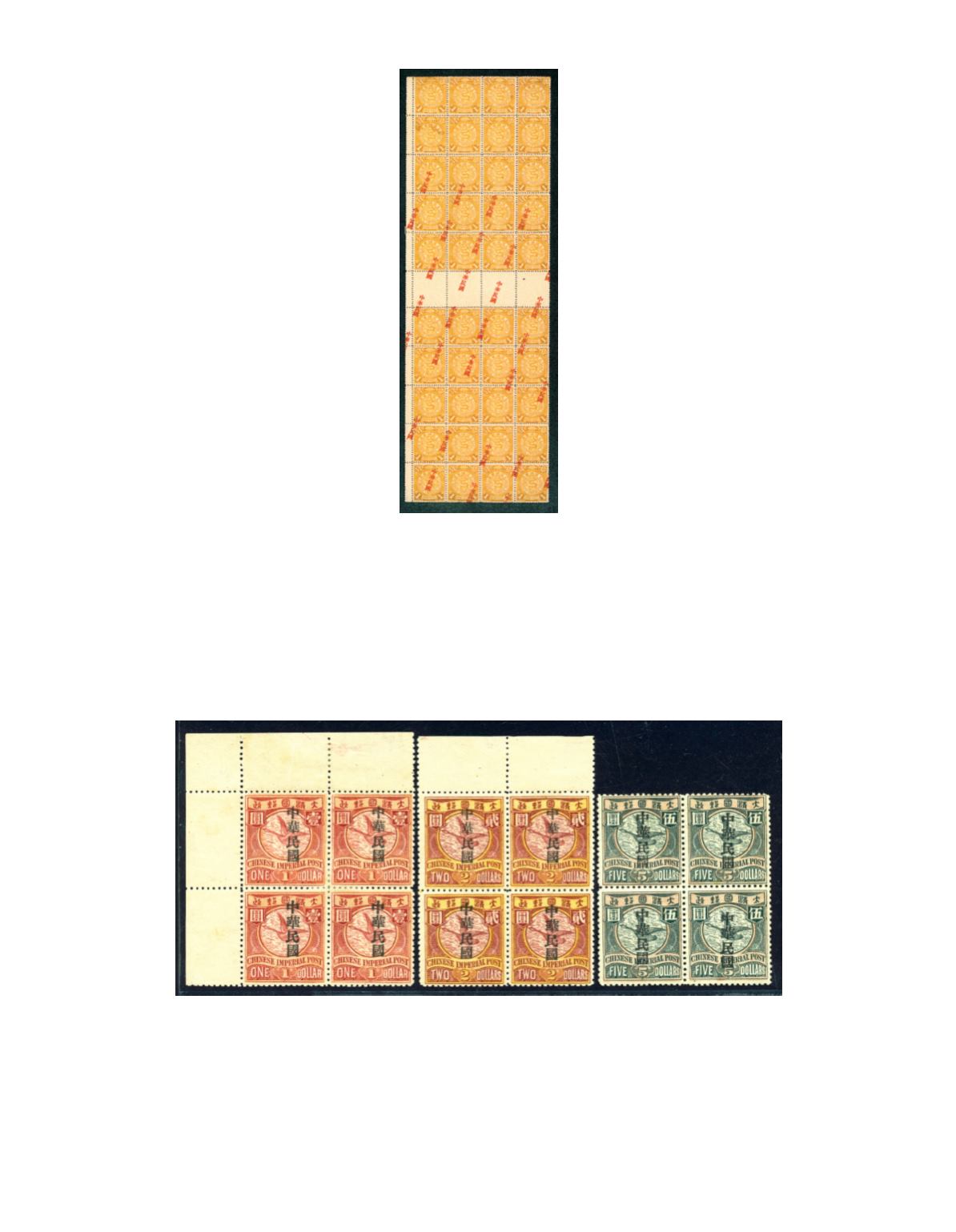 1912 Statistical Department overprinted 'ROC' on Coiling Dragon 1c ochre, gutter block of 40, with overprint dramatically