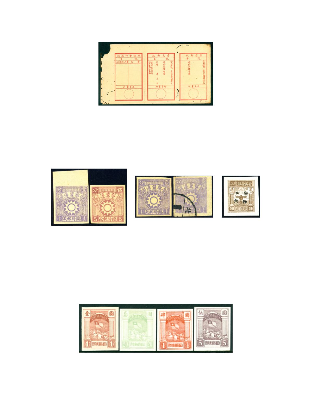 1938 White Full Sun of Nationalist China, 1st printing on brown paper, 1c dull purple x 2, unused and used copy, very fine. Yang