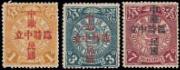 1912 Opt. 'Republic of China, Provisional Neutrality' on Coiling Dragon 1c ocher, 3c blue green and 7c crimson. Lightly hinged.