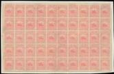 1894 Chinkiang Local Post, 1st. Issue 1/2c rose block of 50 hinged on paper with perf. split at lower bottom, fresh. Chan LCH1. Photo